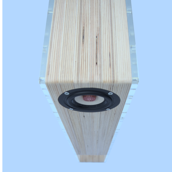 De top notch 3 inch driver met verbluffende specificaties haalt het maximale uit het speciaal gevormde cabinet. Een slechts 2 gram wegende bamboe diafragma wordt door een sterke neodymium motor met precisie en snelheid bewogen. De erg lange slagen die de motor kan maken stellen de speaker in staat lagen tonen en behoorlijke volumes te reproduceren. Het lichte gewicht en de horn zorgen voor goede efficiënties.